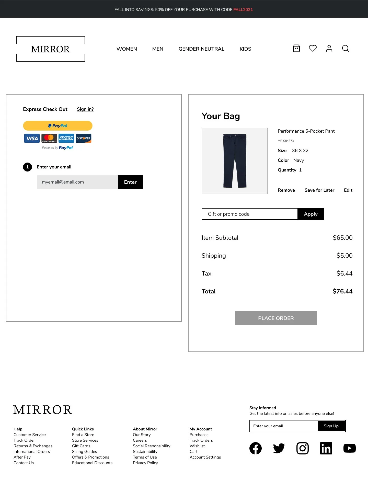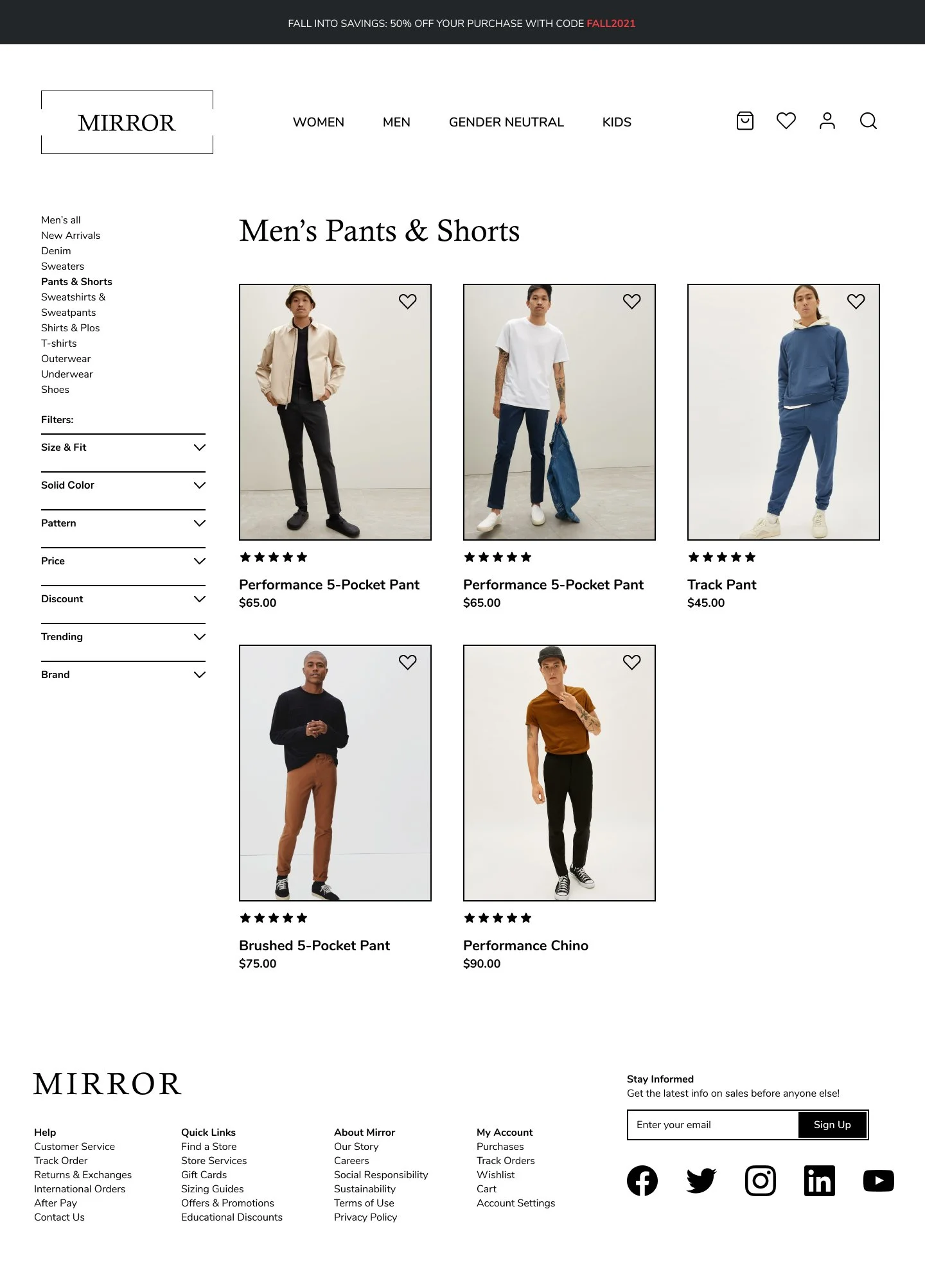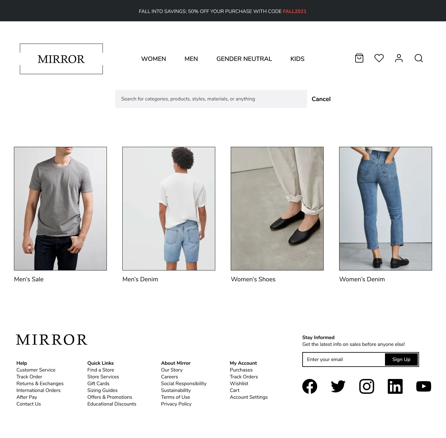 Mirror started back in 1994 as a clothing store targeting a budget-minded audience who looked for low-cost clothing for any occasion. The quality is pretty good and the prices are rather low. Their main goal is to make any type of clothing accessible to everyone. While their clientele has been loyal, the Covid-19 pandemic showed that their customers needed access to online shopping. Mirror must change their website from solely informational, to a full access e-commerce website so its users can order their products online for pickup or delivery.