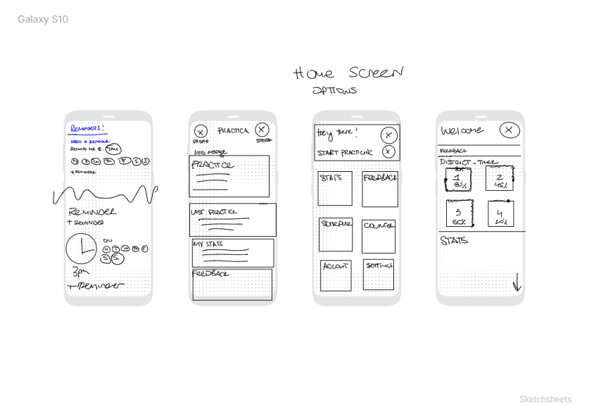 Once screen were sketched, I transitioned to mid-fi wireframes.