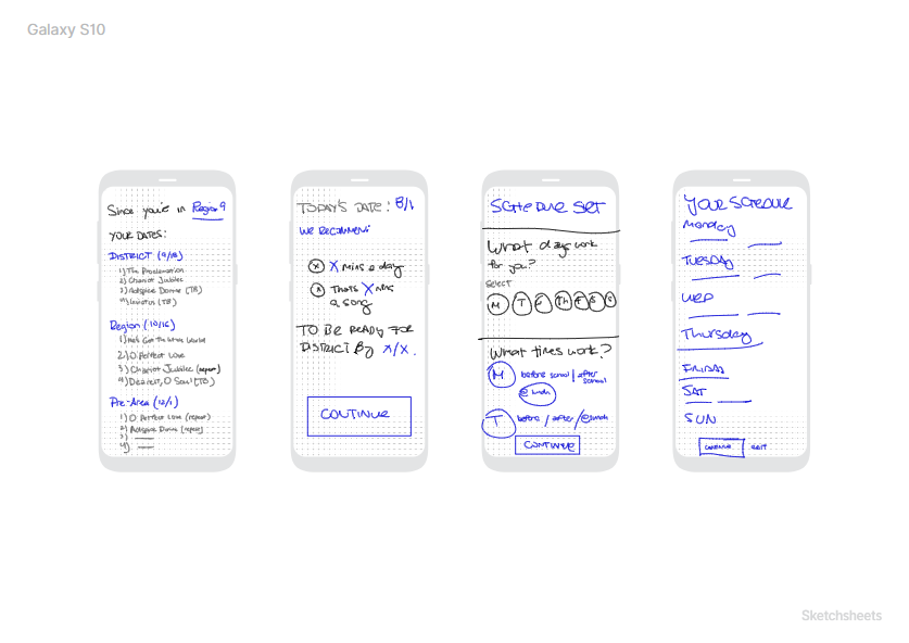 After thinking of the flows I made some quick sketches of what screens Elias would expect to see.